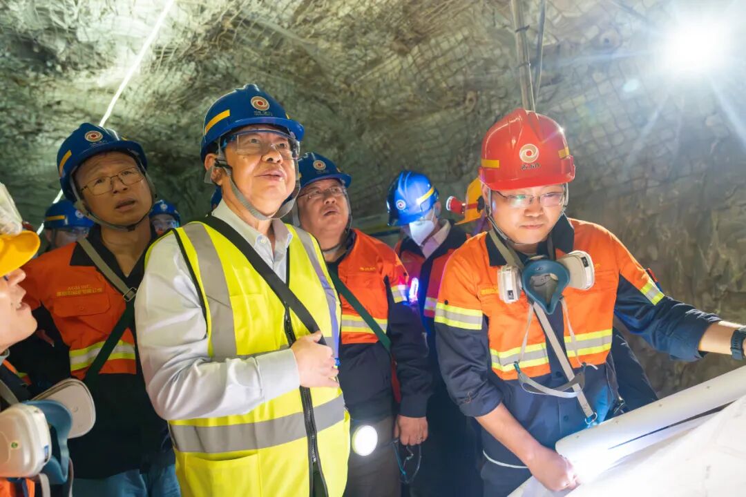 陈景河(右三)调研指导多宝山铜业铜山矿找矿工作