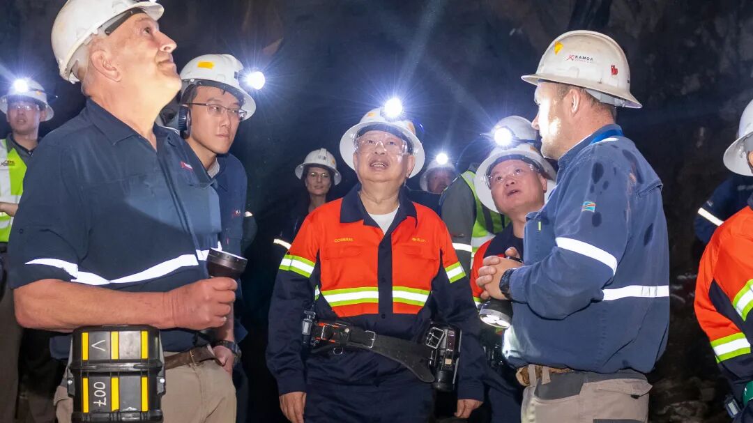 陈景河(前排左三)深入刚果(金)卡莫阿—卡库拉铜矿井下调研